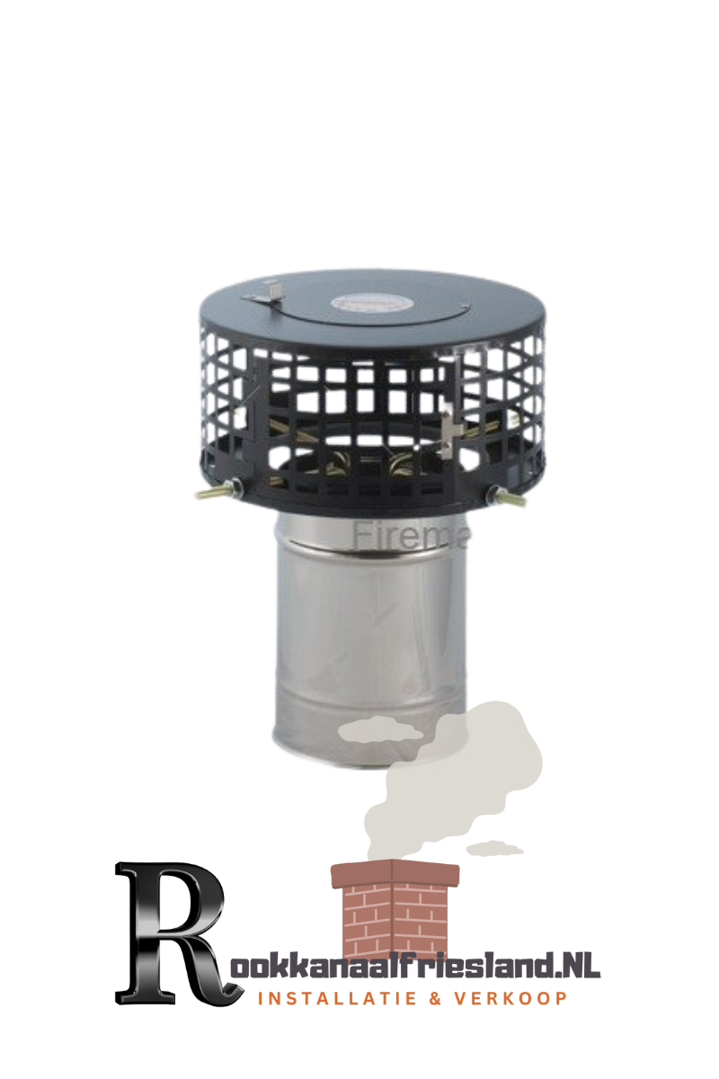 Deze kap kan ook worden geplaatst ónder een smeedijzeren sierkap. De kap voorkomt rookontwikkeling onder de sierkap en voorkomt vogelnesten en andere obstakels.